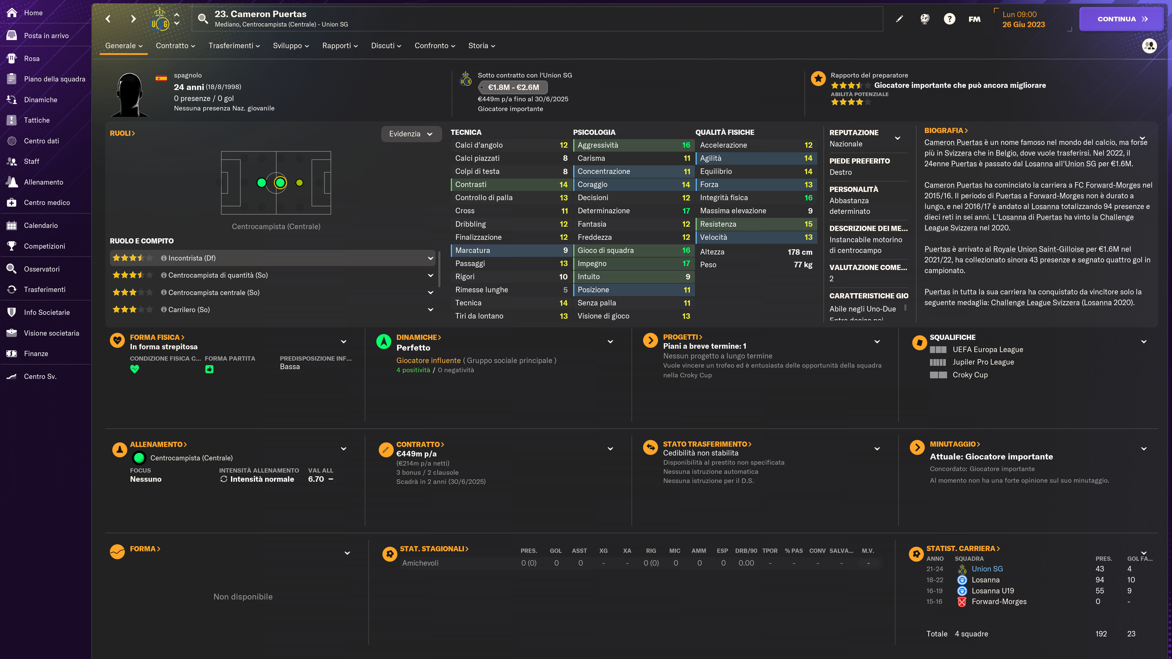 Sembra il tipo di giocatore destinato a tenere fede al suo enorme potenziale e a conquistarsi le simpatie di una nutrita schiera di estimatori in FM24.