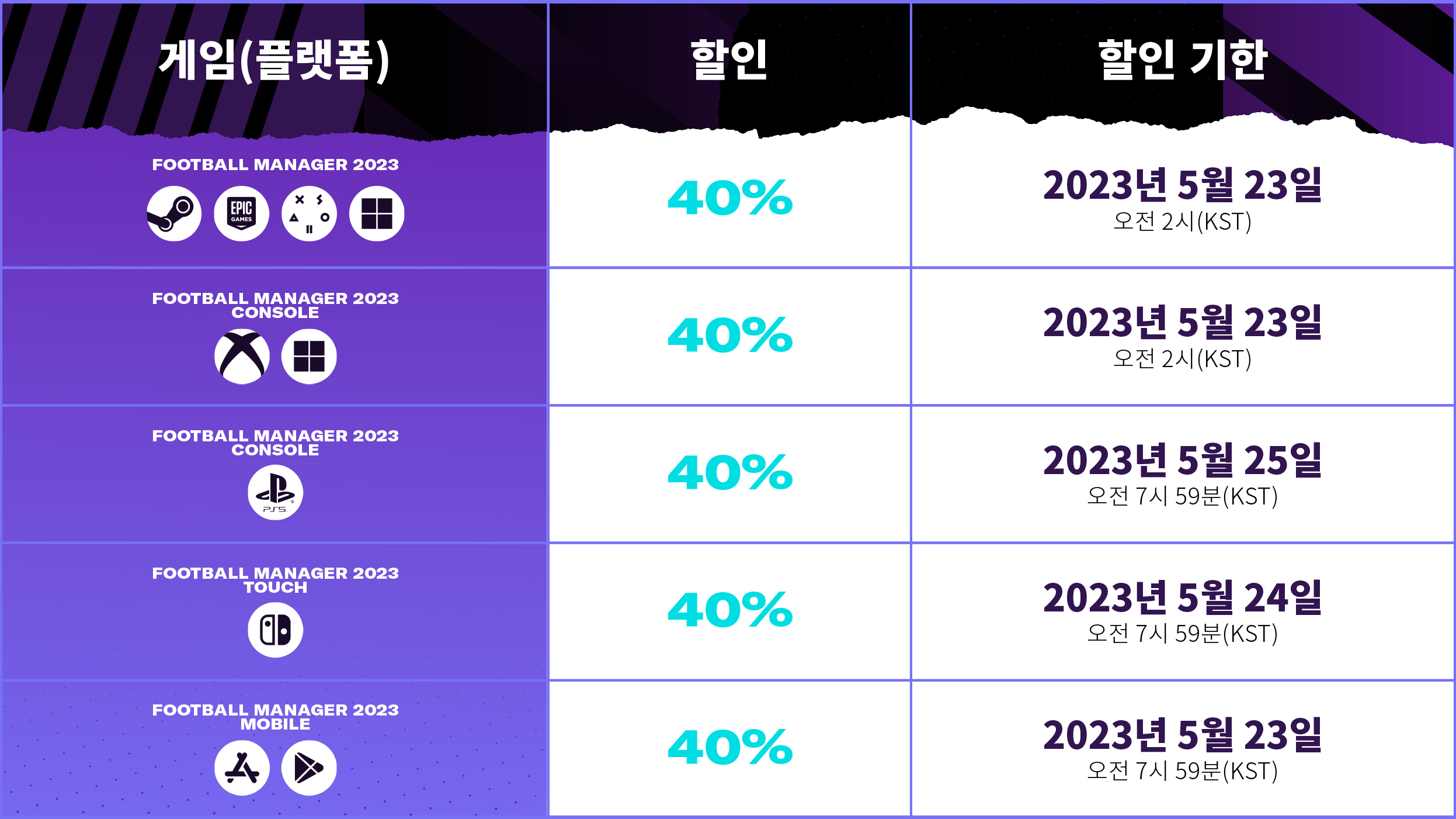 할인은 5월 23일 화요일 오전 2시(KST)에 종료되지만, 정확한 시간 및 할인율은 지역에 따라 다를 수 있습니다. 자세한 내용은 아래 표에서 확인하세요.